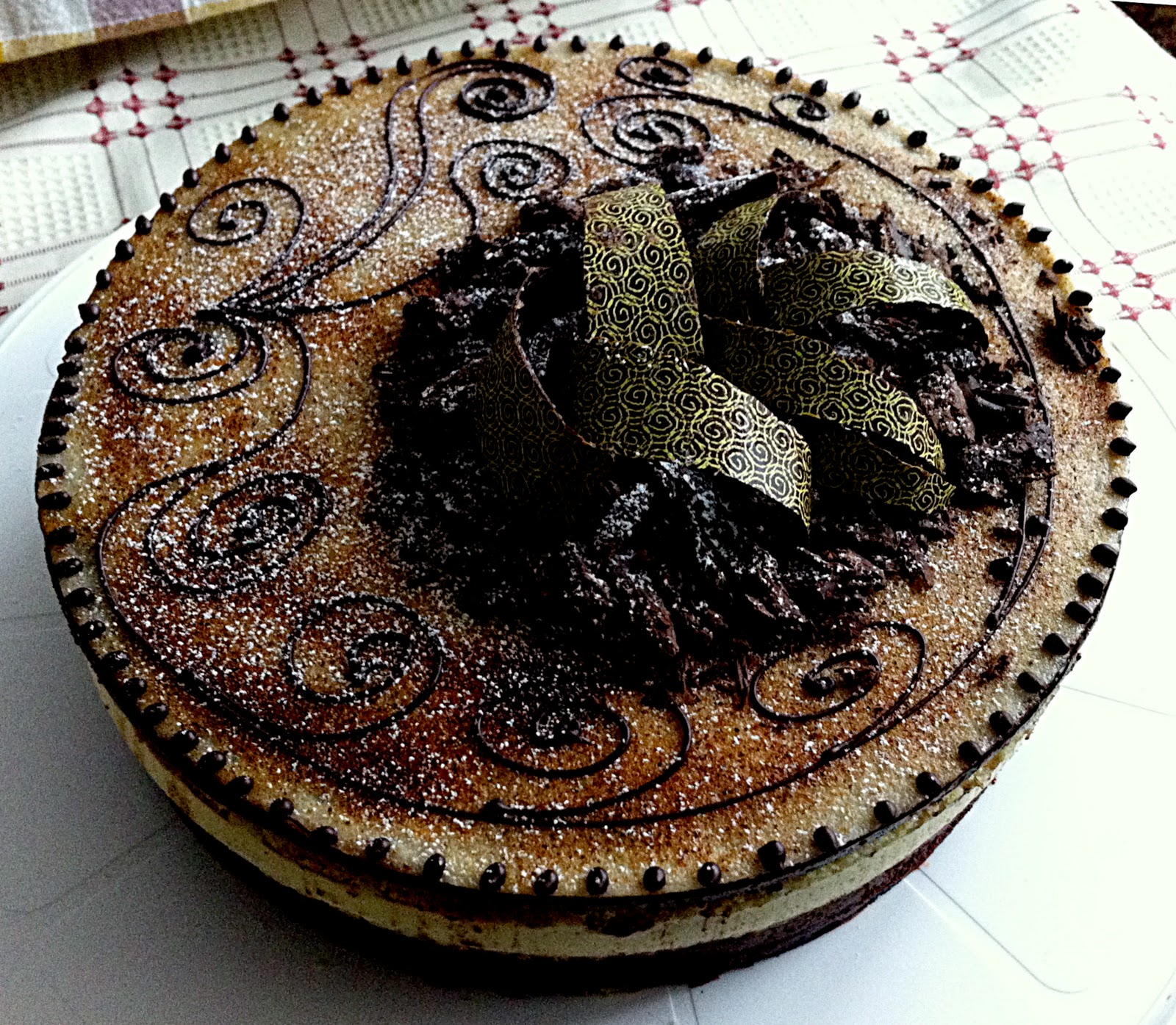 Tort powstał z syntezy kilku pomysłów. Miał być mocno czekoladowy, gdyż robiłam go dla czekoentuzjastów. Biszkopt jest z przepisu Erica Lanlarda i jest wybitny! Mus z czekolady deserowej wzbogaciłam o intensywny smak czarnej porzeczki, inaugurując sezon korzystania z przetworów ;-) Intensywnie czekoladowy smak złamałam warstwą białej czekolady. Grubościami warstw możemy decydować o udziale mocnego smaku czekolady deserowej, dominującej w wersji, którą przygotowałam.