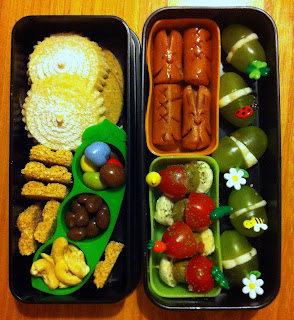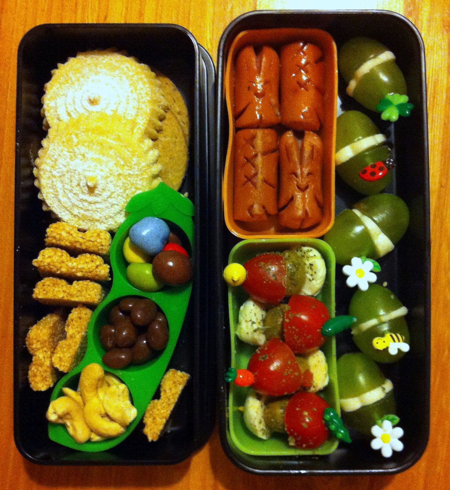 Część wytrawna: parówkowe króliki i żółwie, ponownie koreczki mozzarellowo-pomidorowo-zielonooliwkowe oraz koreczki winogronowe z kozim serem w kształcie kwiatka.
