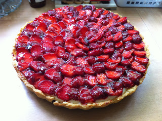 Tarta z kremem z lemon curd i mascarpone i truskawki na inaugurację sezonu truskawkowego.
