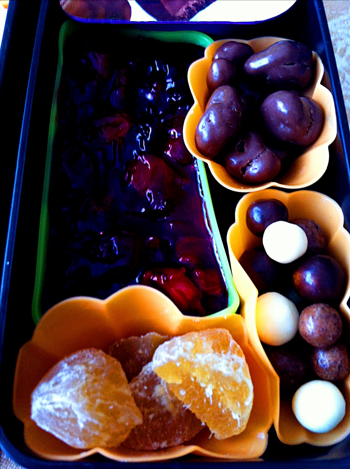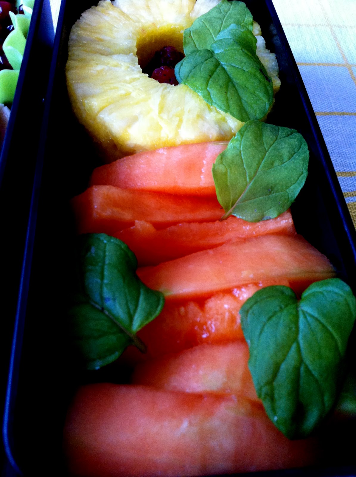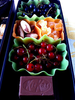 W części deserowej sezonowe owoce: porzeczki czerwone i czarne, orzechy brazylijskie, kazdyzowany melon oraz batonik KitKat.