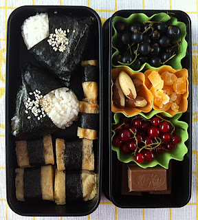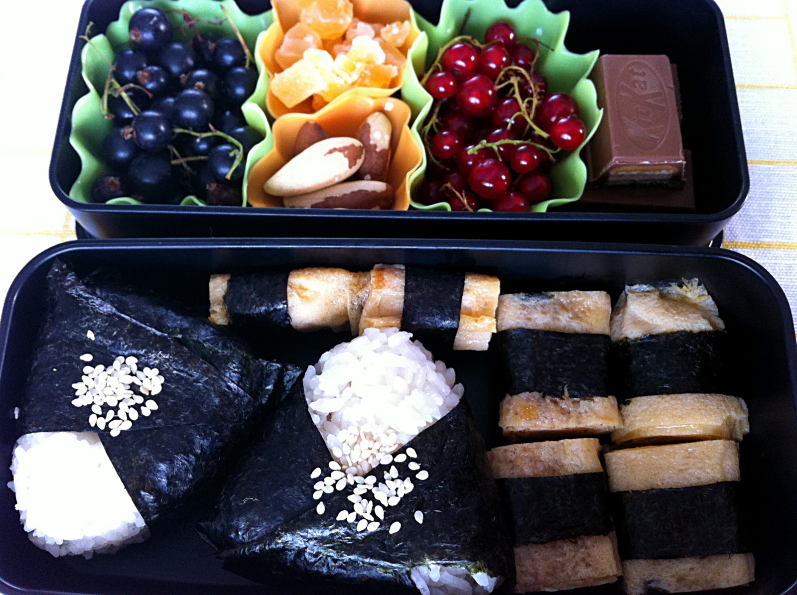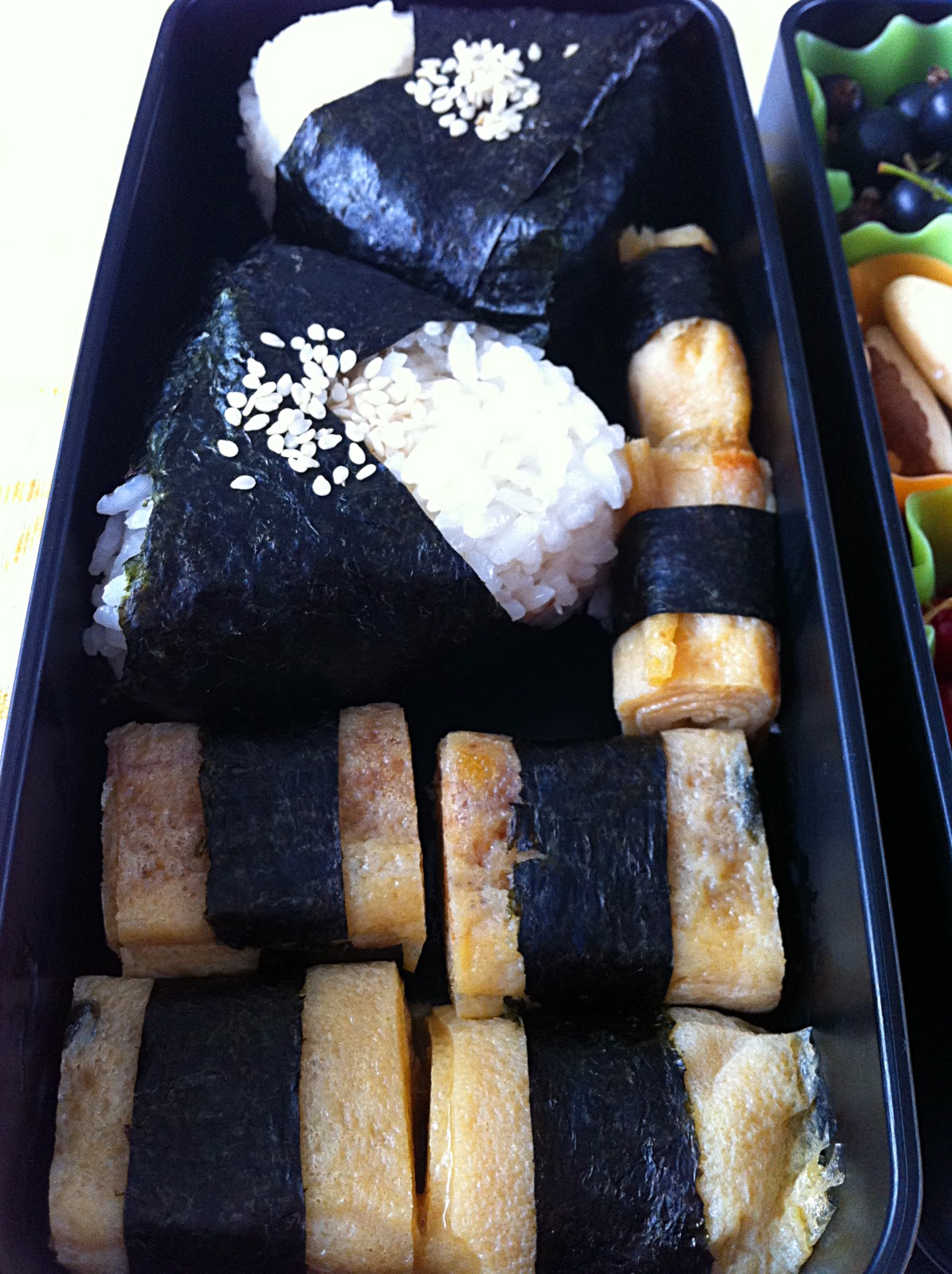 W tym tygodniu odważyłam się po raz pierwszy zrobić onigiri (tradycyjne trójkąty z ryżu) oraz tamagoyaki (japoński omlet o charakterystycznym smaku, zwijany w rulon). Bardzo nam zasmakowały i jest to trzecie podejście w tym tygodniu ;-)