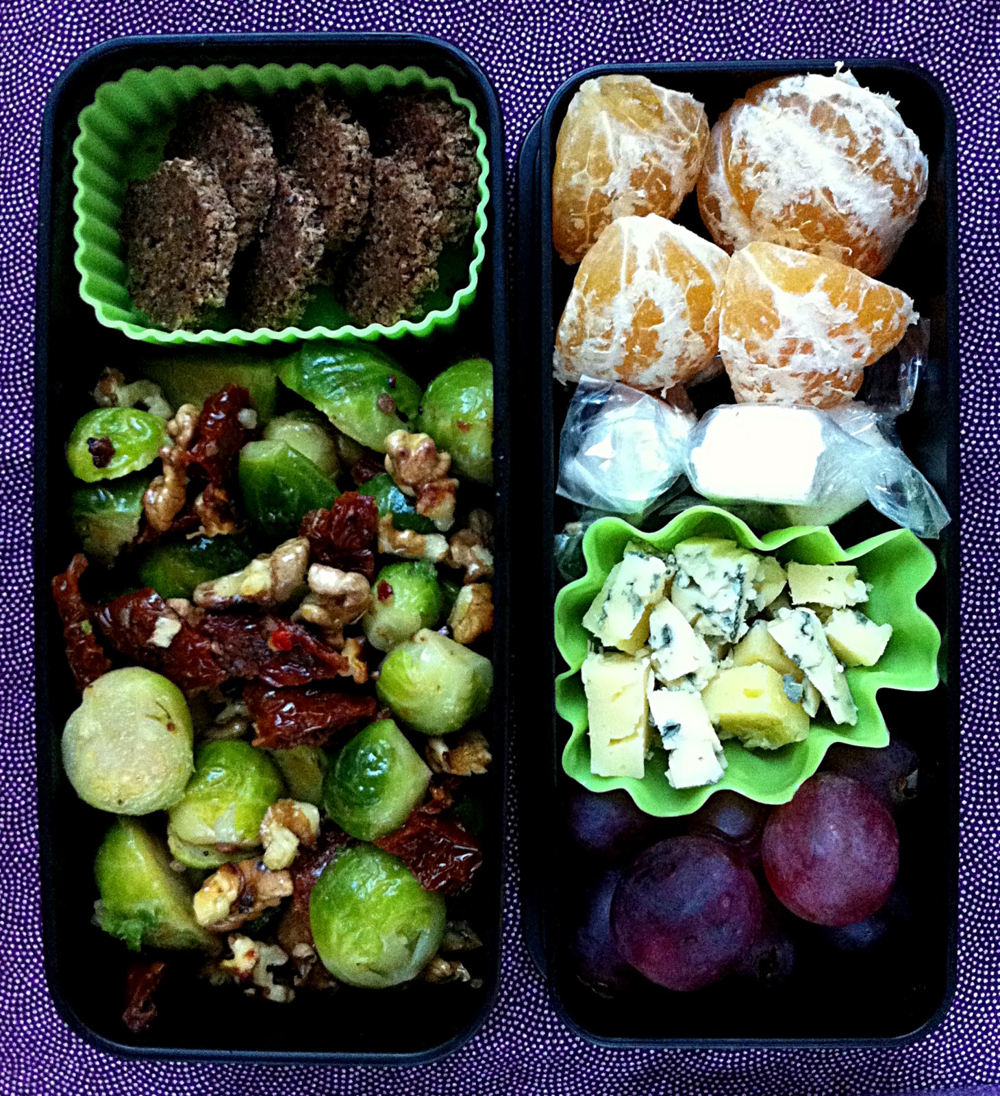 W dzisiejszym bento sałatka z brukselki, suszonych pomidorów i orzechów włoskich podpatrzona na blogu Bentusie. Do sałatki pumpernikiel.