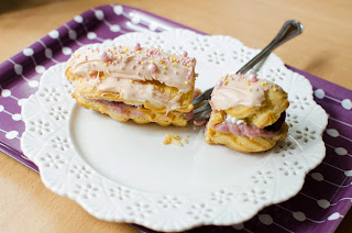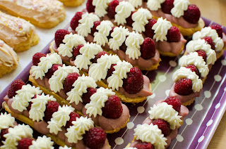 Zawsze lubiłam eklerki, kojarzą mi się ze świętami w przedszkolu ;-) Pomysł na ich malinową wersję jest genialny! Nie podejrzewałam, iż mogą być aż takie pyszne! Poza tym wyglądają bosko :-) Fantastyczny przepis Doroty z niewielką modyfikacją - białą czekoladą zamiast lukru.